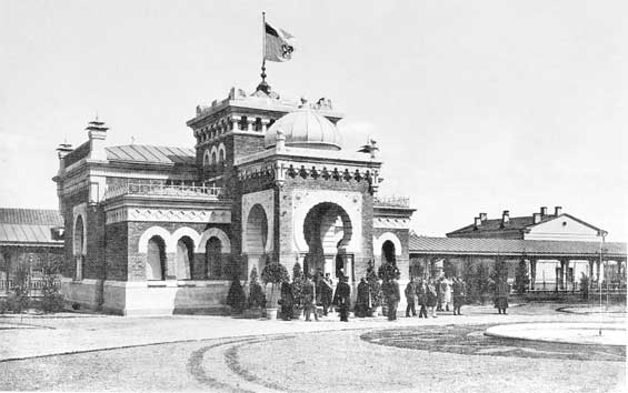 Императорский павильон платформы «Каланчевская». Старое фото. На флагштоке – императорский штандарт