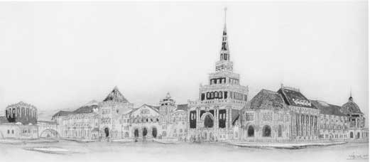А. В. Щусев. Проект Казанского вокзала. Перспектива. 1914. Фрагмент. Частное собрание
