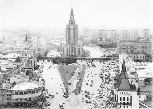 Гостиница «Ленинградская» в перспективе площади. Фото 1970-х