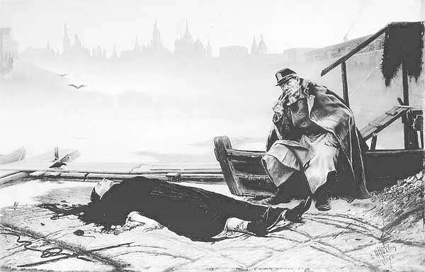 «Утопленница»Семантика Николы Мокрого опасно опрокинута темным художником Василием Перовым в его «Утопленнице». Действие картины несомненно адресуется на отмель подле Воспитательного дома. Городовой, склонившийся над девушкой, слишком не чудотворец, а девушка мертва. Городовой сидит на лодке – атрибут святого Николая, но не в лодке, как сидел бы Николай житийных клейм. Море житейское подбросило к порогу дома труп.