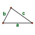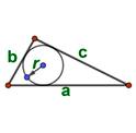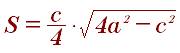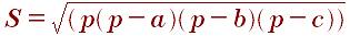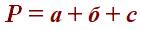 В формуле, а, б, с, означают стороны отрезки периметра.