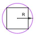 В случае, когда есть квадрат вписанный или описаны вокруг окружности формулы принимают следующие виды: