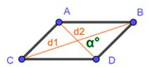 Площадь параллелограмма по диагоналям и угу между этими диагоналями: