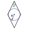 Площадь параллелограмма с вписанной окружностью находится по углам. Такая формула примиряется только по отношению ромба которой верхняя половина зеркально нижнему: