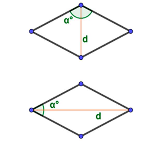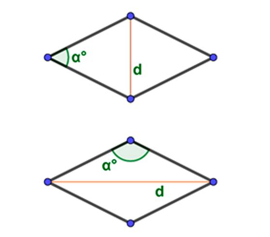 Как и другие фигуры углы ромба тоже можно соединить, зная диагональ можно найти площадь.