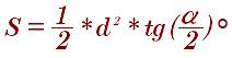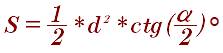 Площадь равнобедренного треугольника по углу между боковыми сторонами и основанию: