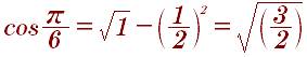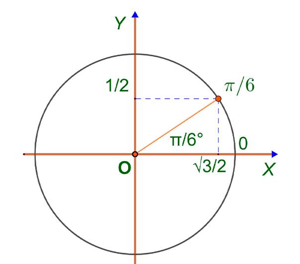 Всё опирается на углы треугольников в случае с углом π/6 треугольником является равносторонний треугольник которого разделили пополам высотой выходящим из верхней точки. Который образует два прямоугольных треугольника с острым углом 30° гипотенузой 2 и катетом 1.