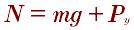 Сила реакции опоры определяется весом mg и составляющей внешней силы, которая направлена вниз P_y.
