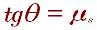 Где θ – угол от горизонтали, а μ_s – статический коэффициент трения между телами.