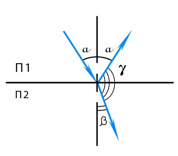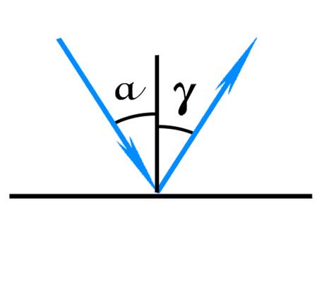 При отражении луча света от граничного слоя (например, воздуха и стекла) угол падения равен точно углу отражения.