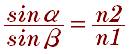 Падающий луч, перпендикуляр к границе раздела сред в точке падения и преломленный луч лежат в одной плоскости, причем отношение синуса угла падения к синусу угла преломления постоянно для данной пары сред и равно показателю преломления второй среды относительно первой.