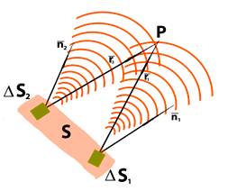 Каждый элемент волнового фронта сам становится источником волны. А результирующий волновой фронт определяется интерференцией волн от этих вторичных источников.