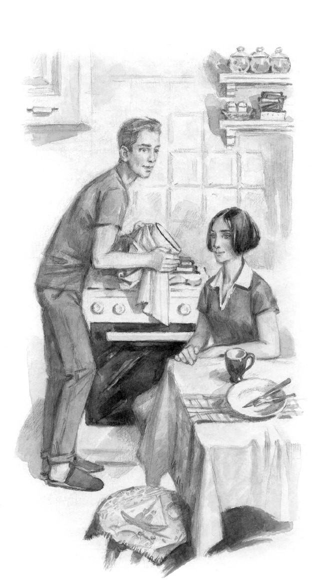 В следующие четверть часа я тоже как мог демонстрировал свои кулинарные способности. Для начала в эмалированной кастрюльке растопил сахарный сироп, но пока искал с Алисой подходящие специи, часть кастрюльки успела необратимо потемнеть. Пришлось спешить, и за неимением свободных сковородок я скоренько разложил на кромке плиты кусочки яблок, хлеба и резаных апельсиновых корок, после чего, обмотав кастрюльку полотенцем, принялся разливать тут и там желтеющий сироп. Обжегшись, капнул пару раз мимо – на пол и табурет.