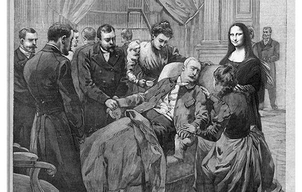 До поры до времени все эти рассуждизмы и намёки выглядели как-то вздорно и легковесно. Однако 26 февраля 1899 года в иллюстрированном журнале «Progres illustre!» появилась очень любопытная картинка, изображавшая момент смерти президента Фора. На ней были показаны его жена, старшая дочь и врачи, перечисленные выше, однако отсутствовал секретарь Ла Галь. Вместо него почему-то был изображён пожилой Бюиссон, личный слуга президента. Но самая главная странность этой иллюстрации заключалась в том, что на ней была запечатлена некая неизвестная женщина, третья по счёту, чьё присутствие символически олицетворяла Мона Лиза. Та самая, нарисованная Да Винчи.