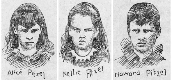 Газеты в конце 1894 г. живо обсуждали судьбы 3-х из 5 детей Питезеля – 14-летней Элис, Нелли, 10 лет и 8-летнего Говарда. То, что их нигде не удавалось обнаружить, рождало самые мрачные предположения о судьбе детей, в частности, высказывались гипотезы об их вывозе за пределы страны, либо тайном усыновлении, но предположение о возможном убийстве детей разрушало все представления тех лет о вероломстве и жестокости.