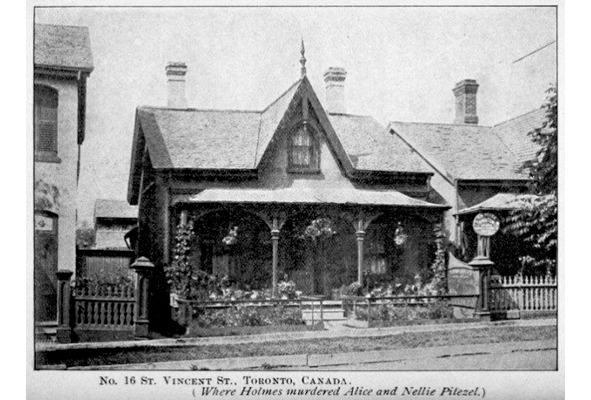 Почтовая открытка с изображением дома №16 по Винсент-стрит в Торонто. После обнаружения в подвале здания трупов Элис и Нелли Питезель этот адрес сделался местной достопримечательностью, туда водили экскурсии, в отелях приезжим предлагали разнообразные сувениры с изображением дома, широко тиражировались почтовые открытки и т. п.