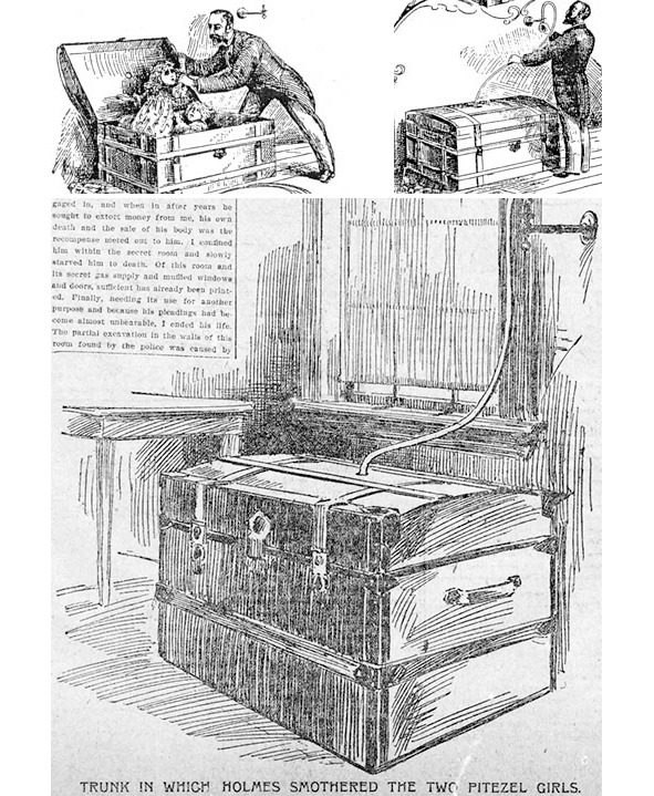 Так газеты того времени иллюстрировали способ убийства Генри Холмсом Элис и Нелли Питезель.
