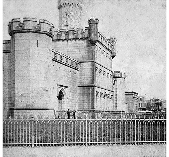 Тюрьма «Мойяменсинг» представляла собой довольно мрачное сооружение, возведенное из синего сиенита. Хотя постройка напоминала классический английский замок, она с самого начала задумывалась как тюрьма. В этой юдоли скорби были устроены 408 одинаковых камер, каждая из которых имела длину 3,95 м., ширину 2,7 м. и высоту 2,7 м. Своим необычным названием тюрьма обязана поселению, на территории которого она была возведена в 1832—1835 гг. С течением времени первоначальная окружная тюрьма расширялась, появилась пристройка для должников и женская тюрьма. Тюремный комплекс был снесён в 1968 г.