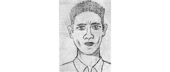 Рисунок неизвестного мужчины, напавшего на Мэрилин и Сэма Шэппарда, подготовленный полицейским художником по описанию потерпевшего.