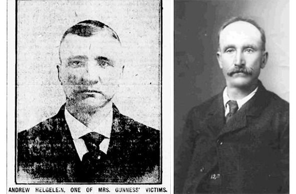 Письмо это обнадёжило Эндрю. Он являлся одногодкой с Белль – оба родились в 1859 году – имел крепкое хозяйство и большие планы по расширению бизнеса – толковая, работящая женщина очень помогла бы ему в этом. В общем, в декабре 1907 г. Эндрю Хелгелейн собрался в поездку и уехал в Индиану. Путь из городка Абердин, Южная Дакота, где он проживал, до Ла-Порта занял несколько дней. До фермы он добрался вполне благополучно уже в январе 1908 г. и сразу оповестил об этом брата письмом. Больше от Эндрю брат писем не получал.