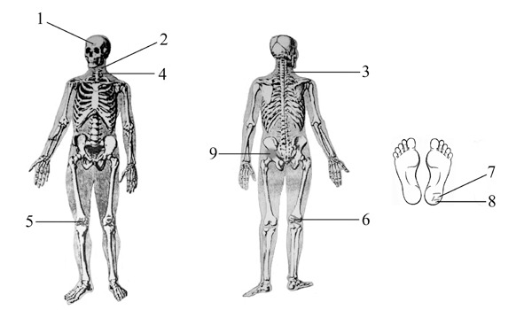 При внешнем осмотре зафиксированы следующие телесные повреждения (см. анатомическую схему) :