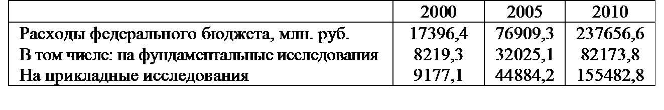В ведущих западных странах бюджетные вливания дополняются финансовой поддержкой, которую оказывают науке ведущие корпоративные и частные предприятия, активно использующие достижения науки для продвижения своей продукции на мировые рынки. Что касается России, то за последние 10 лет она постоянно наращивала финансовую поддержку как фундаментальных, так и прикладных исследований (табл. 5).