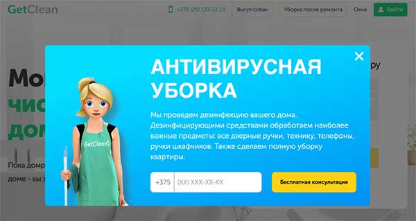 Попап (всплывающее окно) GetClean: