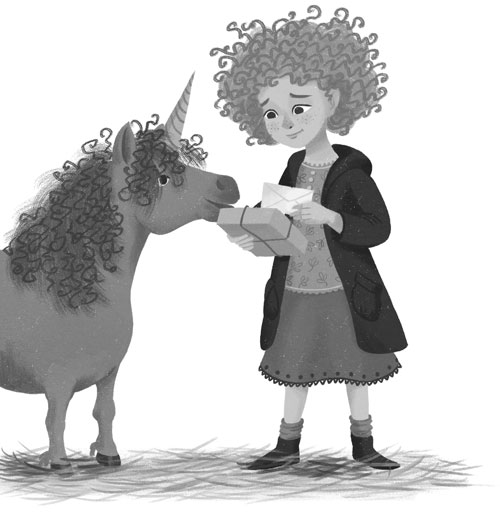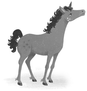 Холли кивнула. Ещё какой! У жеребёнка Пенелопы сиреневая шерсть и большие блестящие глаза-пуговки, густая грива и пушистый хвост, оба – цвета воронова крыла. И короткий узкий рог – скорее рожок – тоже чёрный. Этот цвет он унаследовал от отца, таинственного чёрного единорога. Чёрные единороги чрезвычайно редки, предыдущего видели в Бализалии более ста лет назад. В отличие от других единорогов, их невозможно приручить.