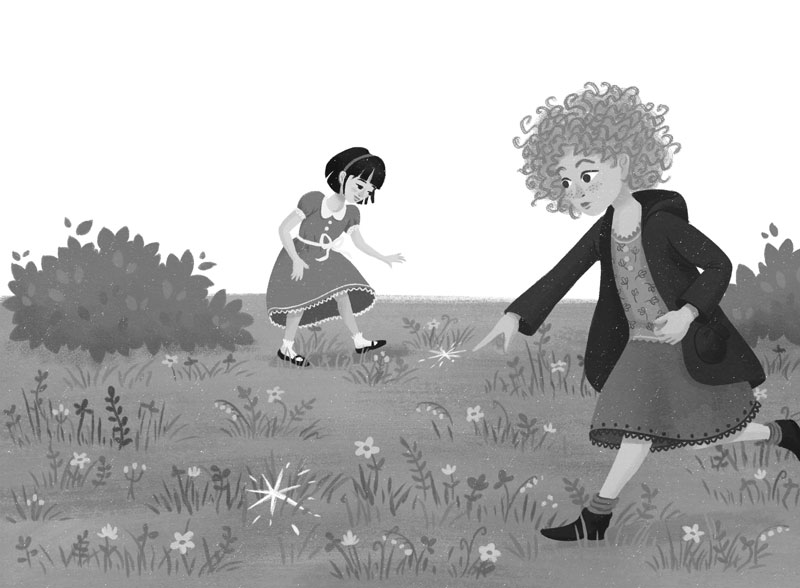 – Это явно какая-то рассеянная фрейлина: разбросала свои драгоценности по всей лужайке. Я посмотрю там, а ты иди туда.