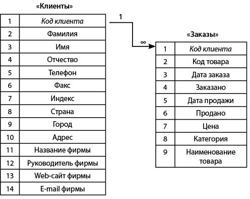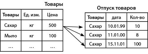 Рассмотрим наиболее часто встречающуюся связь «один-ко-многим». Пример приведен на рис. 10.