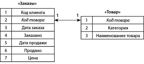 Эти две таблицы связаны по общему полю «Товар». Таблица «Товары» является главной, таблица «Отпуск товаров» – подчиненной. Потеря связей возможна в двух случаях: