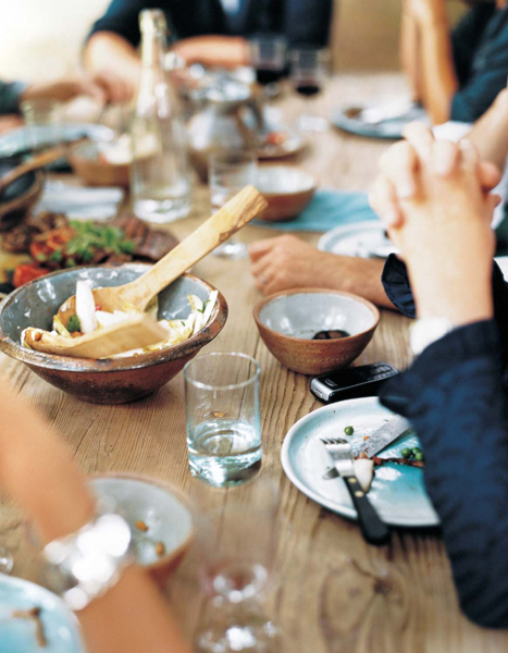 I’m a bit old-fashioned in this way. I don’t have rules and regulations at home, but what I do have is a very hands-on family. It’s not me standing there, cooking away and everyone watching. On Saturday morning, after the girls have been to the gym and Jack has got back from football, we come back and prepare a late lunch together. We won’t eat dinner until seven thirty, eight o’clock, and then it will be a slow braise. For