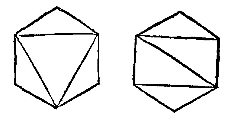 For if they be Quadrangles, they be cut into two triangles: If Quinquangles, into 3. If Hexangles, into 4, and so forth.