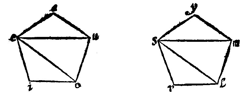 As in these two quinquangles. First the particular triangles are like betweene themselves. For the shankes of aeu and ysm, equall angles are proportionall, by the grant. Therefore the triangles themselves are equiangles, by 14 e vij. And therefore alike, by the 12 e vij, and so forth of the rest.