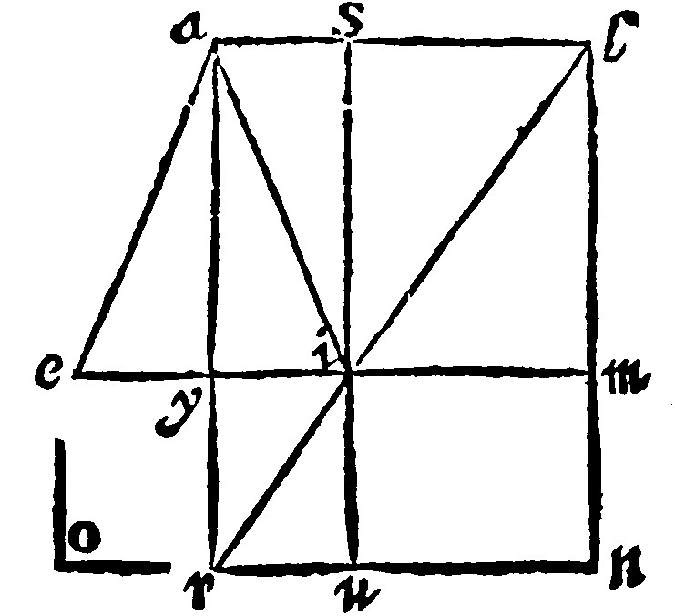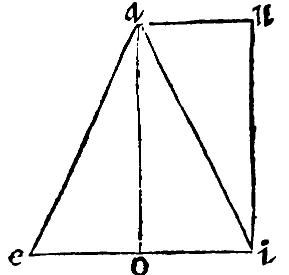 As to aei, the triangle, the parallelogramme aoiu, is equall: because halfe of the parallelogramme is equall to the triangle: Therefore the halfes being equall, whole also shall be equall.