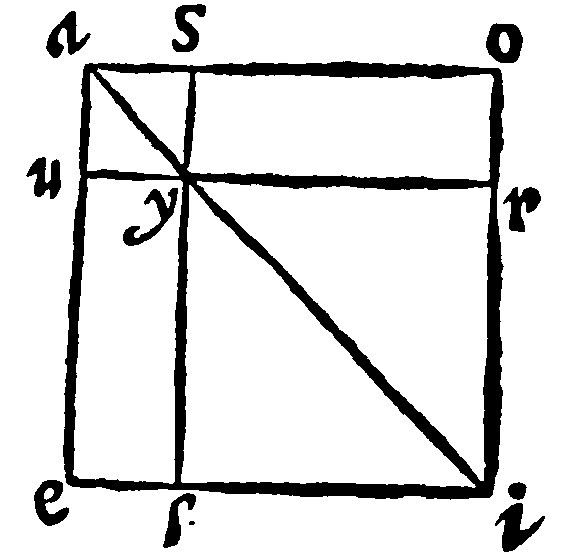 First the Diagonall is defined: As in the whole parallelogramme aeio, the diagonals are auys, and ylir; Because they are parts of the whole, having both the same common angles at a, and i: and diagonall diameter ai, with the whole parallelogramme: Not that the whole diagonie is common to both: But because the particular diagonies are the parts of the whole diagony. Therefore the diagonalls are two.