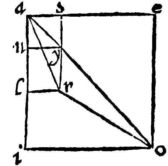 The second station might have beene in o, the end of the perpendicular from a. But by taking the ayme out of the toppe of the lesser altitude, the demonstration shall be yet againe more easie and short, by the two triangles at the yard aei, and aef, resembling the two whole triangles aou, and aoy, in like situation, the parts of the shanke cut, are on each side the segments of the transome.