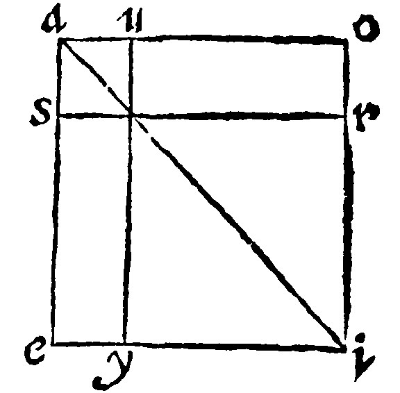 As in this figure, are ur, and sy: For each of them is comprehended of the continued sides of the two diagonals. And therefore are they called Complements, because they doe with the Diagonals complere, that is, fill or make up the whole parallelogramme. Neither in deed may the two diagonals be described, but withall the complements must needes be described.
