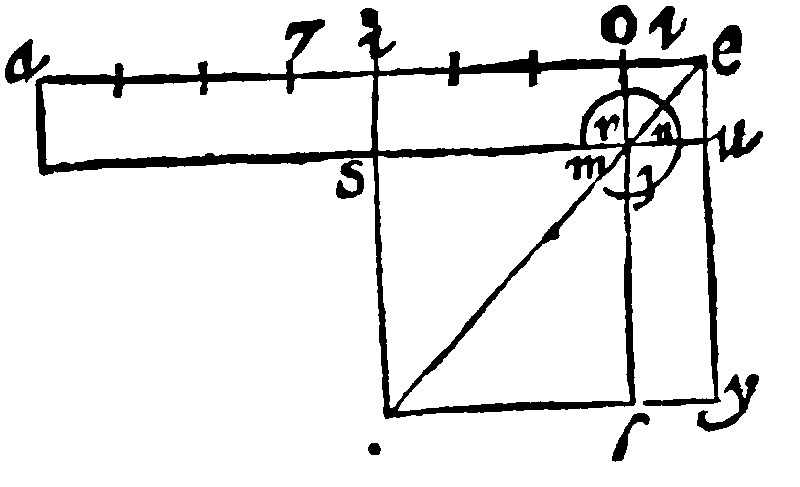 From hence ariseth the Mesographus or Mesolabus of Heron the mechanicke; so named of the invention of two lines continually proportionall betweene two lines given. Whereupon arose the Deliacke probleme, which troubled Apollo himselfe. Now the Mesographus of Hero is an infinite right line, which is stayed with a scrue-pinne, which is to be moved up and downe in riglet. And it is as Pappus saith, in the beginning of his III booke, for architects most fit, and more ready than the Plato's mesographus. The mechanicall handling of this mesographus, is described by Eutocius at the 1 Theoreme of the II booke of the spheare; But it is somewhat more plainely and easily thus layd downe by us.