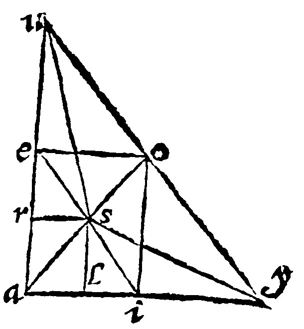 There is one generall Geodesy or way of measuring any manner of triangle whatsoever in Hero, by addition of the sides, halving of the summe, subduction, multiplication, and invention of the quadrates side, after this manner.