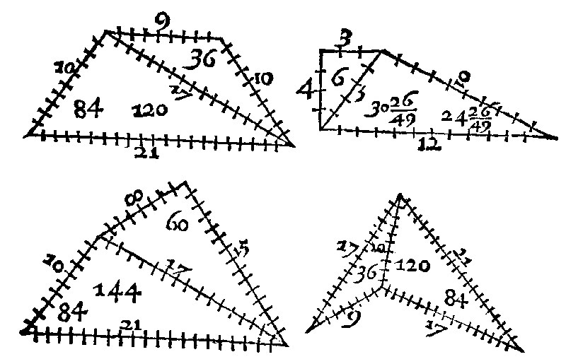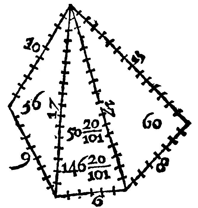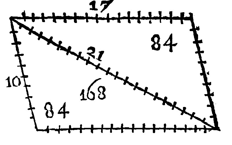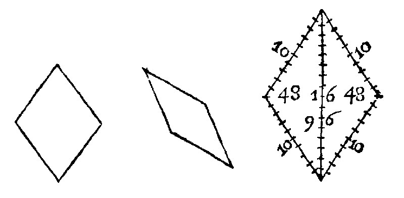 And the Rhomboides is so called as one would say Rhombuslike, although beside the inequality of the angles it hath nothing like to a Rhombus. An example of measuring of a Rhomboides is thus.