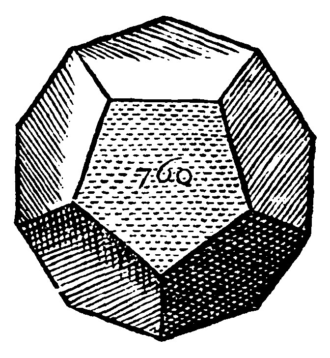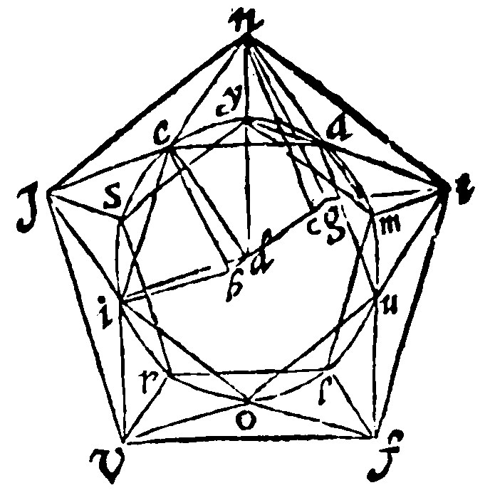 19. A mingled ordinate polyedrum of a quinquangular base is that which is comprehended of 12 quinquangles, and it is called a Dodecaedrum.