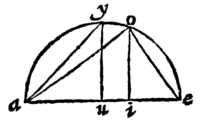 As here let the Axis ae; be the diameter of the circle aue, and ai, equall to the same axis, and perpendicular from the end, be knit unto the center, by the right line io: A right drawne from the section u, unto a, shall be the side of the Icosahedrum. From u, let the perpendicular uy, be drawne: Here the two triangles iao, & uyo, are equiangles by the 13 e, vij. Therfore by the 12 e, vij. as ia, is unto ao: so is uy, unto yo. But ia, is the double of the said ao: Therefore uy, is the double of the same yo: Therefore by the 14 e, xij, it is of quadruple power unto it: And therefore also uy, and yo, that is, by the 9 e xij, uo, that is againe by the 28 e, iiij, ao, is of quintuple power to yo. But yo, is lesser than ao, that is, than oe: Let therefore os, be cut off equall to it. Now as the halfe of ao, is of quintuple valew to the halfe of yo: so the double ae, is of quintuple power to the double ys. Therefore, by the 18 e xxv. seeing that the diagony ae, is of quintuple power to ys; the said ys, shall be the side of the sexangle inscribed into a circle, circumscribing the quinquangle of the Icosahedrum. But the perpendicular uy, is equall to ys; because each of them is the double of yo. Wherefore uy, is the side of the sexangle. But ay, is the side of the Decangle: For it is equall to se: Because if from equall rayes ao, and oe, you take equall portions oy, and os: There shall remaine equall, ya, and se. And the Diagony of an Icosahedrum by the 16 e xxv, is compounded of the side of the sexangle, continued at each end with the side of the decangle. Wherefore ay, is the side of the decangle. Lastly, ua, whose power is as much as the sides of the sexangle and decangle, by the 15. e, xviij, shall be the side of an Icosahedrum.