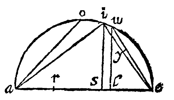 As it will plainely appeare, if all of them be gathered into one, thus. For ai, the side of the Tetrahedrum, subtendeth a greater periphery than ao, the side of the Octahedrum; And ao, a greater than ie, the side of the Cube; because it subtendeth but the halfe: And ie, greater than ue, the side of the Icosahedrum: And ue, greater than ye, the side of Dodecahedrum.