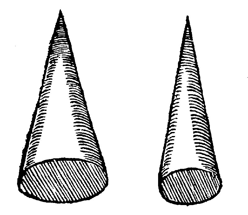 14. A plaine made of the base and thid part of the height, is the solidity of the cone of equall base & height;