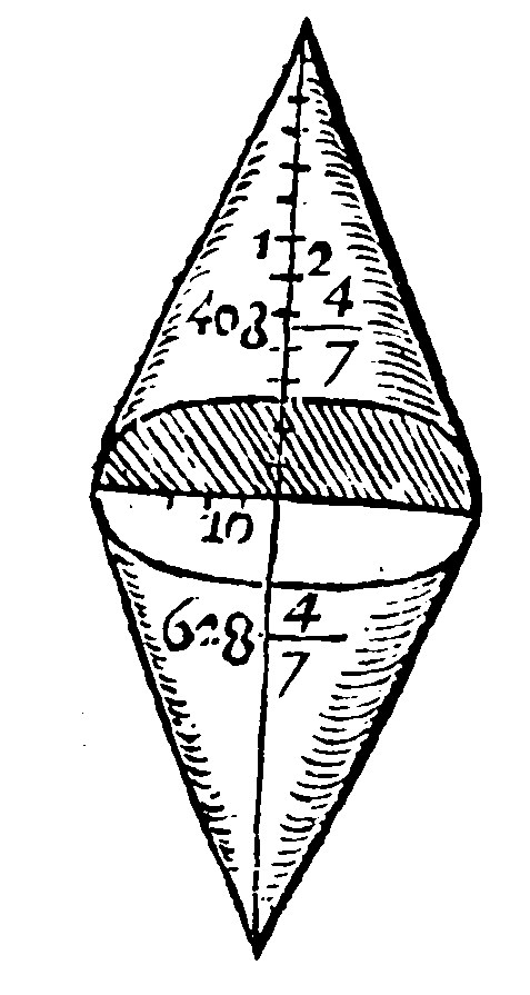 Of two cones of one common base is made Archimede's Rhombus, as here, whose geodæsy shall be cut of two cones.
