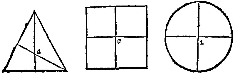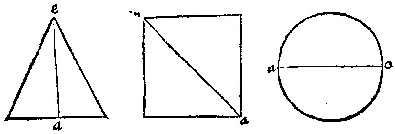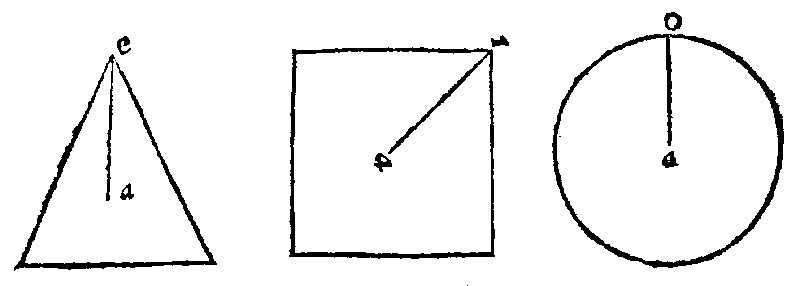 In some part of a figure the Center, Perimeter, Radius, Diameter and Altitude are to be considered. The Center therefore is a point in the midst of the figure; so in the triangle, quadrate, and circle, the center is, aei.