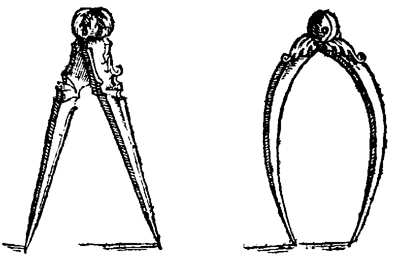 Talus, the nephew of Dædalus by his sister, is said in the viij. booke of Ovids Metamorphosis, to have beene the inventour of this instrument: For there he thus writeth of him and this matter:—Et ex uno duo ferrea brachia nodo: Iunxit, ut æquali spatio distantibus ipsis: Altera pars staret, pars altera duceret orbem.