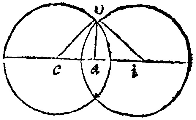 Now as the Rular was the instrument invented and used for the drawing of a right line: so also may the same Rular, used after another manner, be the instrument to describe or draw a periphery withall. And indeed such is that instrument used by the Coopers (and other like artists) for the rounding of their bottomes of their tubs, heads of barrells and otherlike vessells: But the Compasses, whether straight shanked or bow-legg'd, such as here thou seest, it skilleth not, are for al purposes and practises, in this case the best and readiest. And in deed the Compasses, of all geometricall instruments, are the most excellent, and by whose help famous Geometers have taught: That all the problems of geometry may bee wrought and performed: And there is a booke extant, set out by John Baptist, an Italian, teaching, How by one opening of the Compasses all the problems of Euclide may be resolved: And Jeronymus Cardanus, a famous Mathematician, in the 15. booke of his Subtilties, writeth, that there was by the helpe of the Compasses a demonstration of all things demonstrated by Euclide, found out by him and one Ferrarius.
