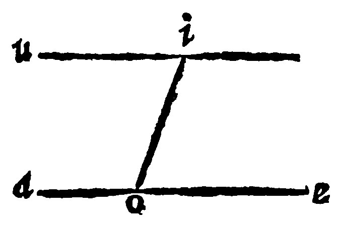 Thus much of the Perpendicularity of plaine right lines: Parallelissmus, or their parallell equality doth follow. Euclid did justly require these lines so drawne to be granted paralels: for then shall they be alwayes equally distant, as here ae. and io.